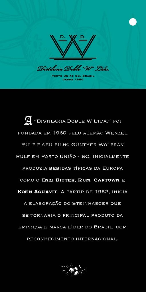 A Doble W foi fundada em 1960 pelo alemão Wenzel Rulf e seu filho Gunther Wolfran Rulf. A fábrica foi construída em Porto União – SC, Inicialmente fabricando bebidas típicas da Europa como o Enzi Bitter, Rum , Captown e Koen Aquavit. A fábrica só começou a produzir Steinhaeger em 1962, e a Vodka em 1977.