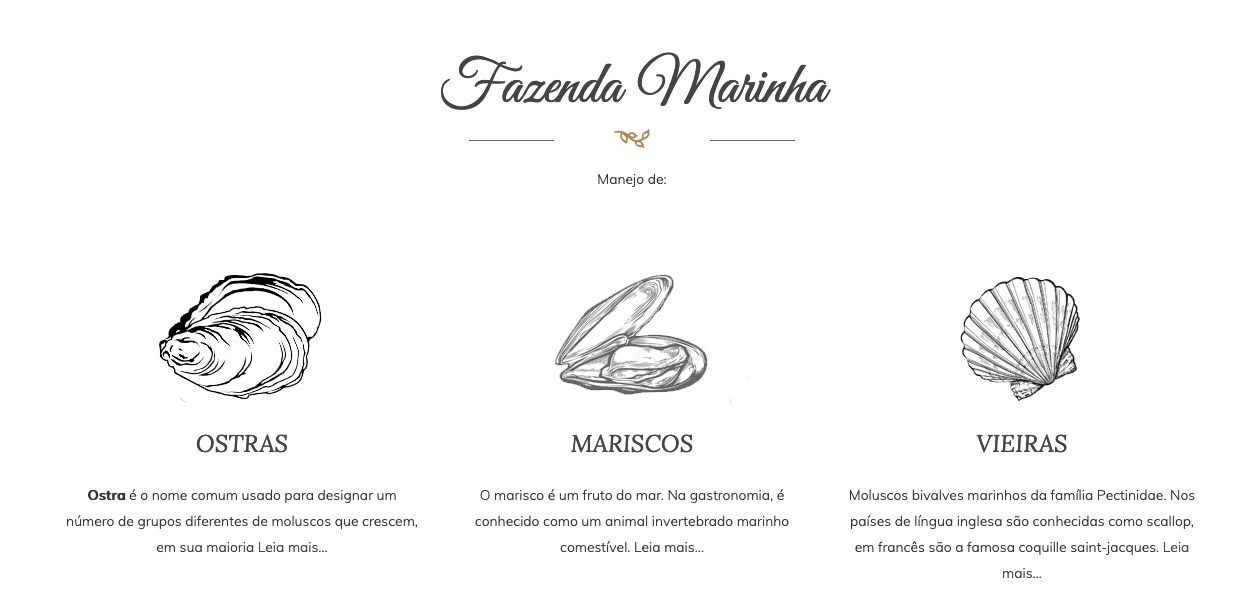 2010, produzindo frutos do mar de altíssima qualidade! Uma das Fazendas Marinhas pioneiras no manejo de Ostra, Mariscos e Vieira no Ribeirão da Ilha, possui um