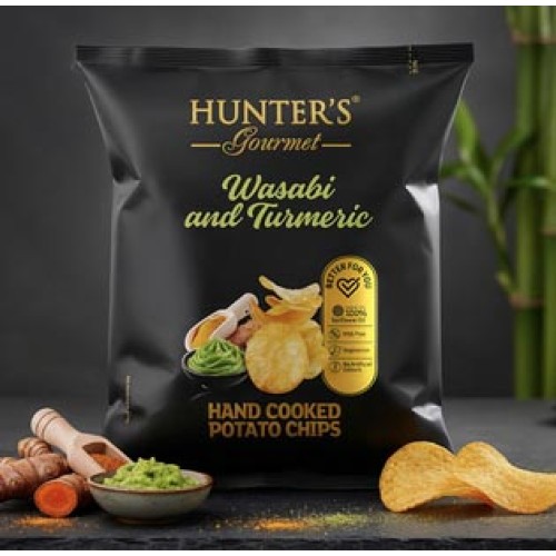 A Batata Hunter’s Wasabi & Cúrcuma combina o picante do wasabi com o toque dourado da cúrcuma, um snack premium para quem não tem medo de ousar.